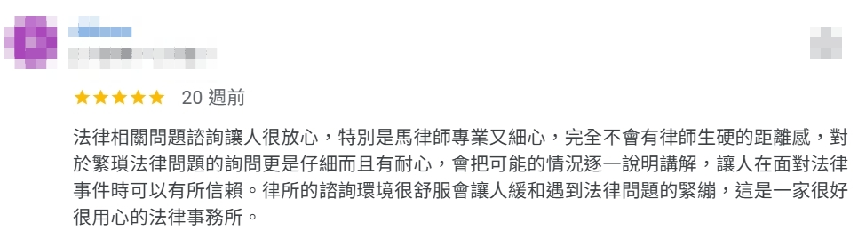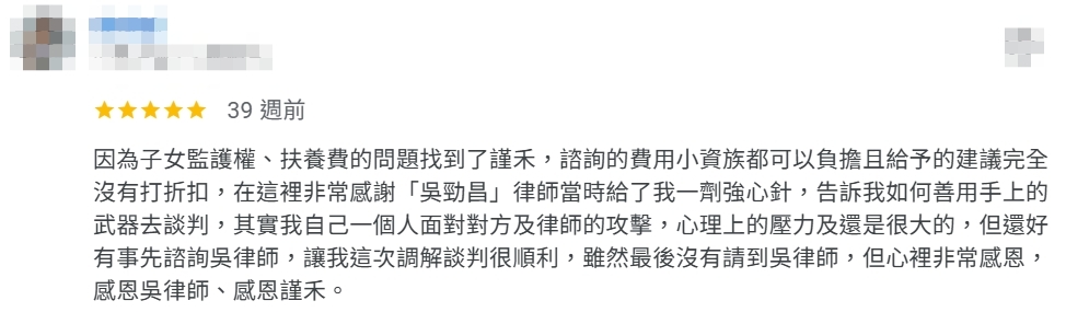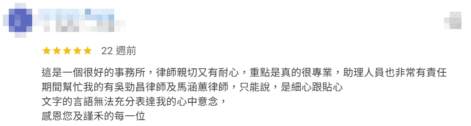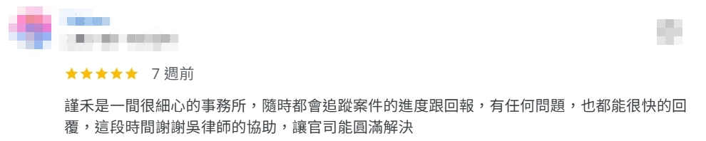 謹禾法律事務所|Google 真實推薦評價公開,專業律師的服務紀錄