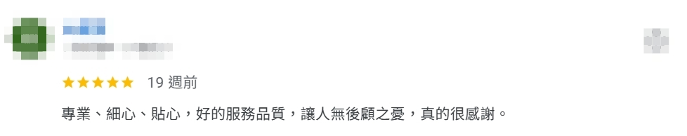 以下呈現 Google 上的真實評論(公開可查、未經修改或交換),你可以直接感受到每一位客戶的真實心聲。