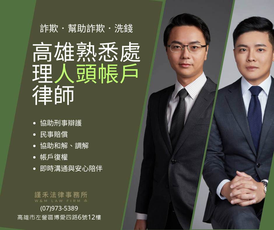 高雄熟悉處理人頭帳戶案律師|詐欺、幫助詐欺與洗錢